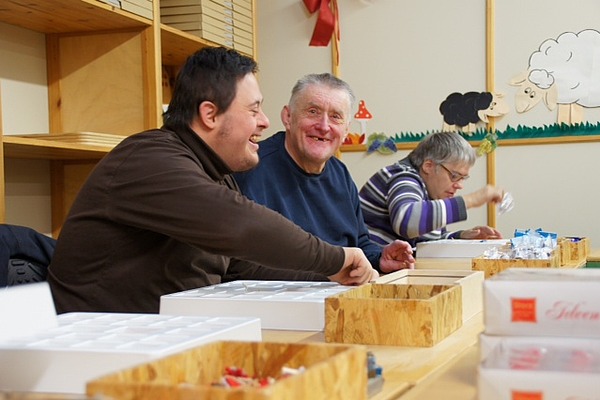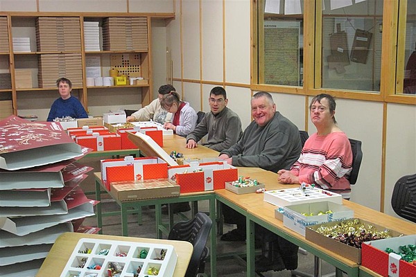 Hofmann Adventskalender werden von behinderten Mitarbeiterinnen und Mitarbeitern der Lebenshilfe Werkstätten Forchheim befüllt