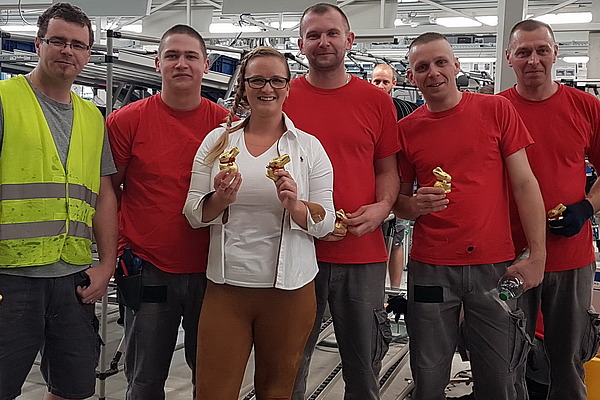 Überraschungsbesuch bei dem ehemaligen Hofmann-Mitarbeiter Frank Rotter, der sich in den Ruhestand verabschiedet