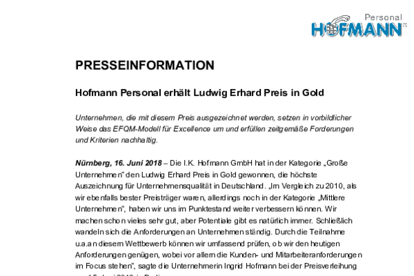 Hofmann Personal erhält Ludwig Erhard Preis in Gold