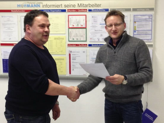 Februar 2013 – Die Aktion „Mitarbeiter werben Mitarbeiter“ hat sich für Jens Hillemann, Produktionsmitarbeiter im BMW-Werk, bestens bezahlt gemacht: Die Freude war riesig, als er für den Gewinn der Mallorcareise gezogen wurde. Wer rechnet schon damit? Die Übergabe der Gewinnerurkunde haben wir zum Anlass genommen, ihn zur Aktion „Mitarbeiter werben Mitarbeiter“ ein wenig zu befragen.