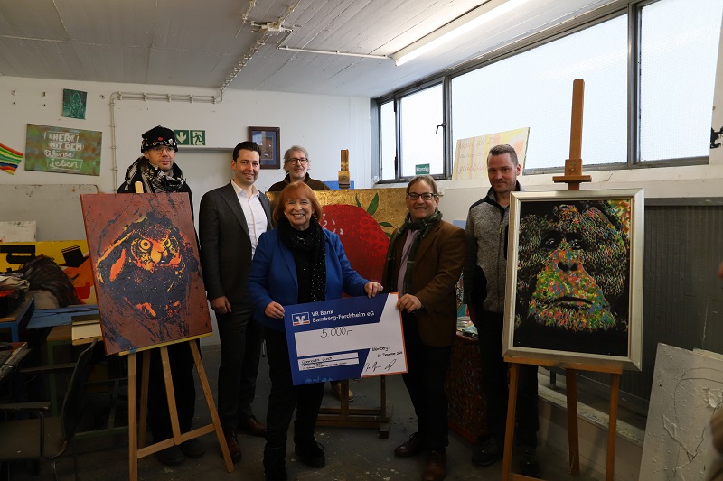 Hofmann Personal und die integrative Künstlergruppe aus Langwasser, Chroma Omada, verbindet eine langjährige Zusammenarbeit im Bereich der Kunstförderung. Kurz vor Weihnachten erwarb das Tochterunternehmen der I. K. Hofmann GmbH, HPM, einige Bilder der talentierten Künstler für seine neuen Büroräume. Doch dabei wollten es weder Ingrid Hofmann noch HPM belassen. Deshalb stockten sie gemeinsam den Betrag auf 5.000 Euro auf. Wolfgang Zeiliger war von der Höhe der Spende absolut überwältigt: „Da können wir jetzt wieder tolles Material für neue Kunstwerke kaufen. Ganz herzlichen Dank!“