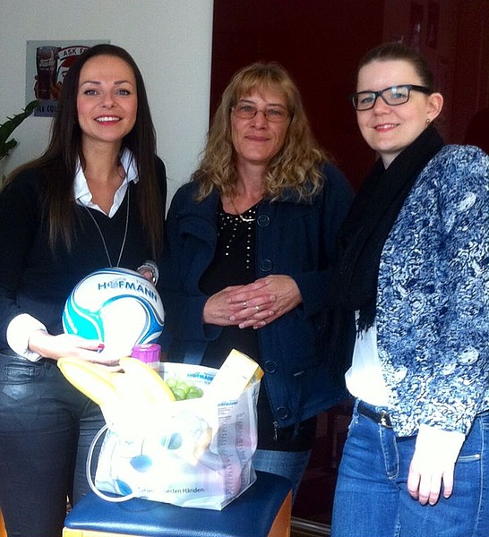 August 2014 – „An apple a day keeps the doctor away!“, schmunzelt Büroverantwortliche Sabine Brumm und fährt zufrieden fort: „Wir wollen Zeichen setzen und unsere Mitarbeiter ermuntern, das Thema gesunde Ernährung nicht aus den Augen zu verlieren. Darum beschenkten wir sie anlässlich unserer regelmäßigen Arbeitsplatzbesuche mit einer kleinen Obstauswahl.“
