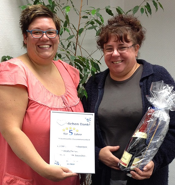 August 2014 – Mitte August feierte Eva Grasberger ihr 5-jähriges Jubiläum. Ihren Besuch in der Niederlassung nutzte das Team, um ihr anlässlich ihres Jubiläums ein nettes Präsent nebst Urkunde zu übergeben.