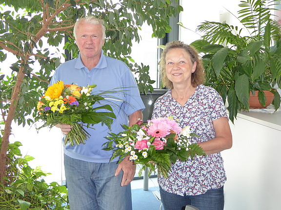 Mit Blumen, etwas Süßem sowie Karten für die Chemnitzer Stadthalle für die Veranstaltung „Leipziger Pfeffermühle“ wurden die beiden vom Hofmann-Team in den Ruhestand verabschiedet.