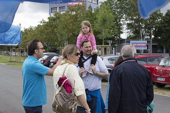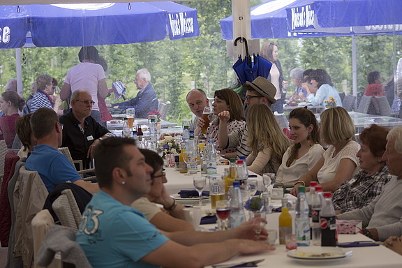 Eigentlich wollte man bei Sonne gemeinsam mit den Gästen flanieren und die schöne Natur genießen – stattdessen regnete es heftig. „Aber auch darauf waren wir vorbereitet Wir hatten ein großes gemütliches Zelt mit einer guten Rundumversorgung für unsere Gäste, sodass uns der Regen letztendlich egal war. Außerdem boten sich gute Gelegenheiten, in lockerer Atmosphäre über die allgemeine Auftragslage und die Perspektiven für unsere Mitarbeiter zu sprechen", meint Niederlassungsleiterin Melanie Mayer.