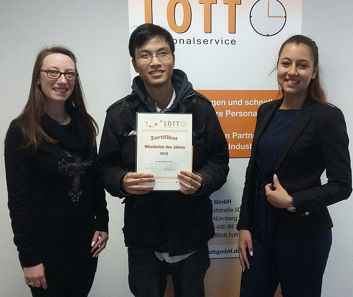 Januar 16 - „Sie machen einen tollen Job bei unserem Kunden; und darüber freuen wir uns“, meint Büroverantwortlicher Alexander Strauß. Als kleine Anerkennung erhielten Nghi Ngyen und Georg Zografos jeweils einen Kinogutschein und selbstverständlich eine Urkunde. Vielen Dank für die gute Zusammenarbeit!
