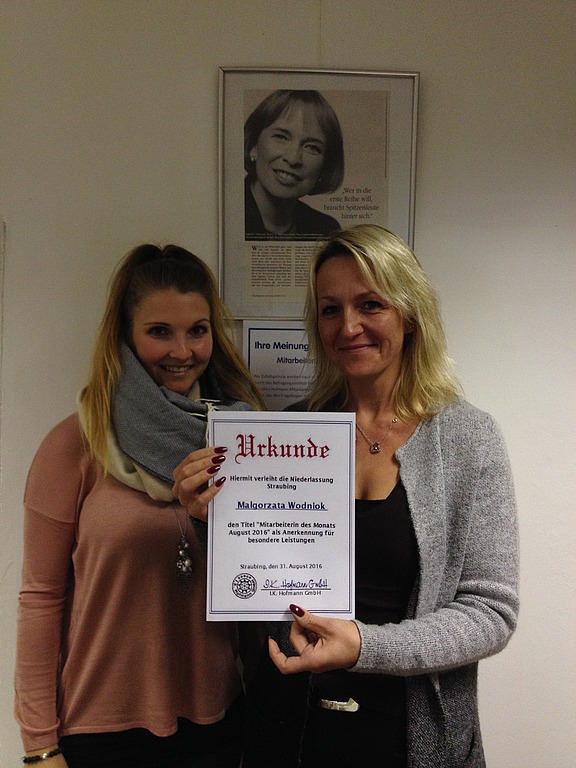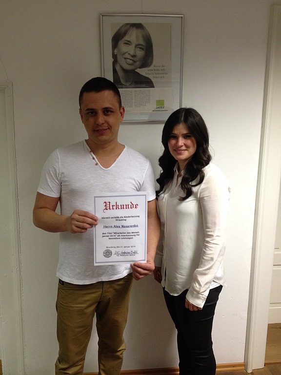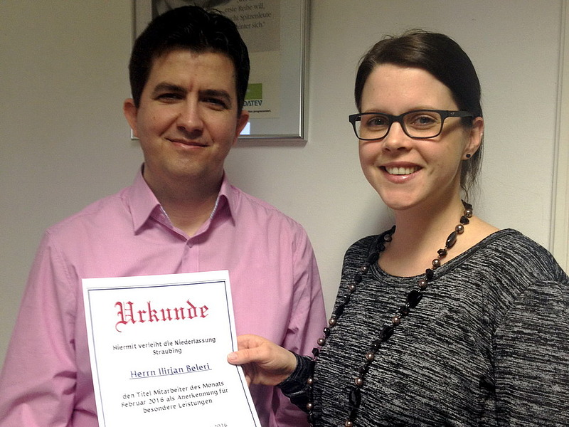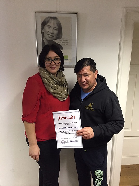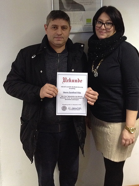 Dezember 16 - „Wir haben super tolle Mitarbeiter und ich möchte, dass das auch wahrgenommen wird. Darum zeichnen wir bei entsprechender Leistung unsere Mitarbeiter aus. Ich sage Danke schön an Ilirjan Beleri, Gabor Bogdan, Zamfirel Filip, János Richard Lovász, Alaex Nasarenko, Steve Rackl, Bernhard Wagner und Malgorzata Wodniok“, sagt Büroverantwortliche Marlene Gebhardt.