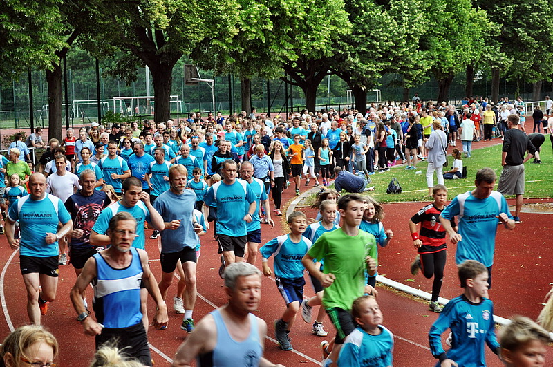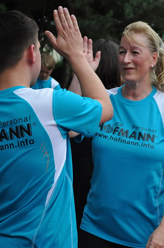 Teamassistentin Nathalie Battus erzählt:“ Getroffen haben wir uns am Sportplatz Hatzfeldallee – dort wurden wir vom Vorstand mit ein paar netten Willkommensworten begrüßt. Danach gab es eine kurze Einweisung zum Lauf, der um 17.oo Uhr begann. Nach einer Stunde hatten wir es dann geschafft. Summa summarum ein tolles Erlebnis, mit so vielen Läufern unterwegs gewesen zu sein. Das ist dann schon mal was anderes, als wenn man so alleine vor sich hinjoggt!“