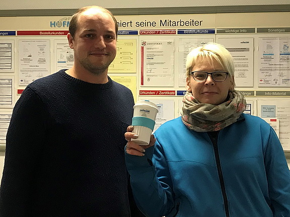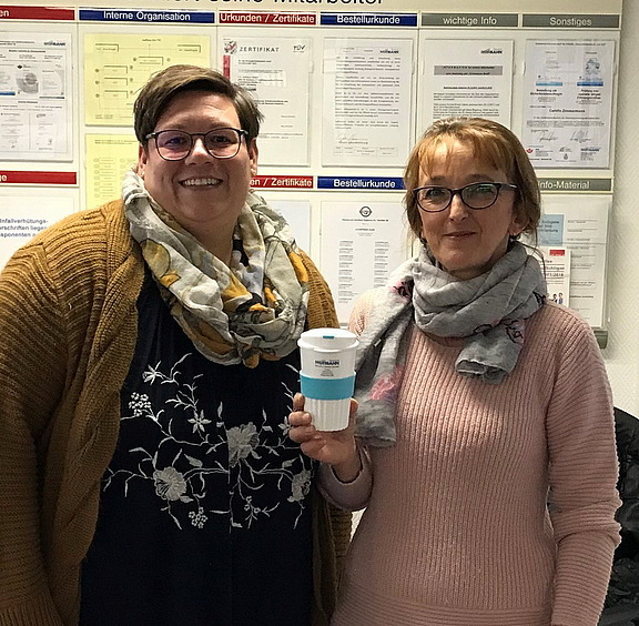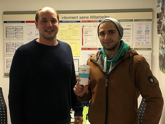 Mit dem Jobmobil besuchten wir unsere Mitarbeiter an ihrer Arbeitsstelle bei den Großkunden, um ihnen ein kleines Jubiläumsgeschenk zu überreichen – einen eigens dafür kreierten „Coffee-to-go-Jubiläumsbecher. Da wir so nicht alle Kollegen anfahren, genauer gesagt erreichen konnten, haben bzw. erhalten diese ihr Geschenk in der Niederlassung.