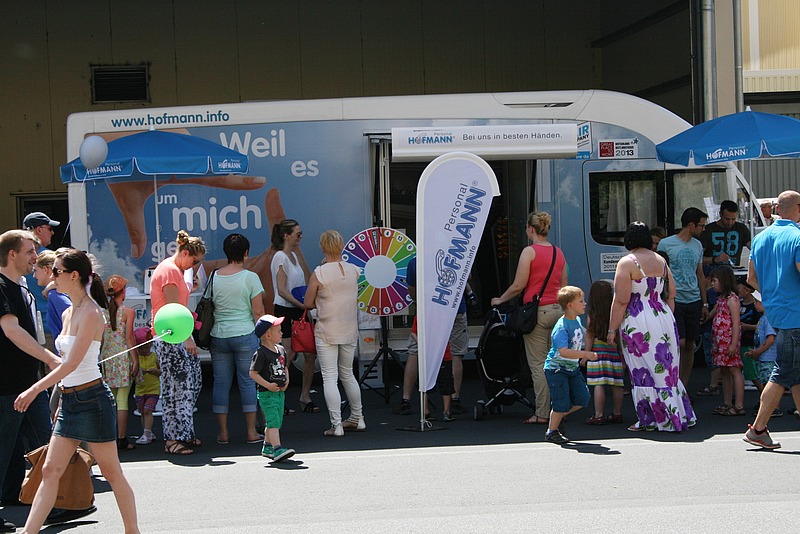 Juni 2014 - Mitte Juni nahm unser Jobmobil Fahrt auf in Richtung Frankfurt. Als Hingucker war es eine der Attraktionen beim Familientag, den ein Kundenunternehmen veranstaltete. Nebst einer Werksbesichtigung standen vor allem vergnügliches Laissez-faire und spannende Freizeitaktivitäten wie Klettern oder Glücksspiele im Vordergrund.