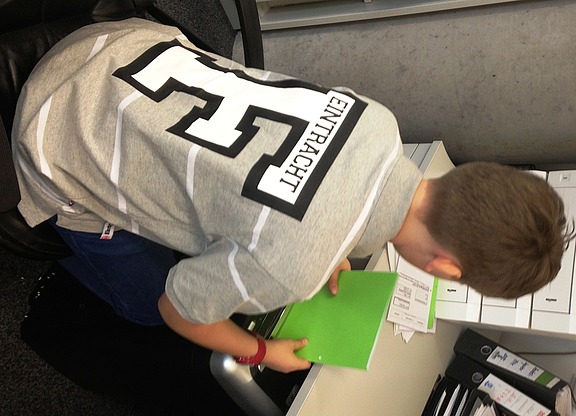 „Wir fanden den Tag mit Ben wirklich klasse!“ erzählt Anja Tauber, Personalsach-bearbeiterin der Niederlassung. „Seine Euphorie als er z.B. Schreddern durfte, war wirklich ansteckend. Und wussten wir selbst in diesem Alter noch rein gar nichts über PCs oder Tablets, so jonglierte Ben bereits sehr sicher mit seiner „Workstation“: Er druckte Dokumente, kopierte und half bei der Archivierung. Seine Effektivität hierbei war enorm; statt die Unterlagen einzeln zu kopieren kamen klare Ansagen wie: „Ich geh das jetzt noch nicht kopieren; ich warte, bis alles komplett ist!“ Ben verhielt sich also fast schon wie ein ganz „normaler“ Mitarbeiter des Büros und er verbreitete Fröhlichkeit und gute Laune!“, freut sich die Sachbearbeiterin.