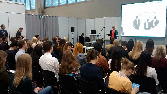 Juni 2016 – „In meinem Vortrag ging es primär um das Thema selbstbewusste und positive Kommunikation, vor allem im Vorstellungsgespräch. Das heißt: Welche Eigenschaften verbinde ich mit meiner Person und zu welchen Eigenschaften im Unternehmen passen diese? Wie gestalte ich meinen "Elevator Pitch" in drei Minuten und positioniere mich als Marke?“, erklärt Hofmann-Coach Carmen Raesig, die auch den Mitarbeitern als Coach zur Verfügung steht und u.a. zukünftige Führungskräfte unterstützt.