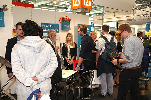 Auch der Hofmann-Stand wurde von den vorwiegend jungen Besuchern gut angenommen, denn kaufmännisches Personal wird von den Hofmann-Kunden gesucht und auch gerne nach einiger Zeit in die Stammbelegschaft übernommen. „Wir haben vor allem Zugang zu großen und bedeutenden Firmen der Region. Das sollten Bewerber nutzen“, rät Niederlassungsleiterin Jenny Schäff. Für Höherqualifizierte besonders interessant ist das Team des experts consulting centers (ecc), eine Unit von Hofmann Personal, das sich auf die Vermittlung Höherqualifizierter spezialisiert hat.