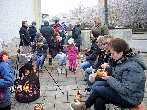 Dezember 16 - Ein nettes weihnachtliches Hoffest sollte es sein, und das war es dann auch. Bei Glühwein, Kinderpunsch und Plätzchen versammelten sich die Gäste um ein warmes Feuer, über dem das leckere Gulasch köchelte. Für die etwas kleineren Familienmitglieder gab es Wiener im Brot; somit war für jeden etwas dabei. Ganz nebenbei konnte sich noch jede Familie einen Christbaum aussuchen, der an Heiligabend entsprechend geschmückt für eine wunderbare, feierliche Stimmung sorgen wird. Wir wünschen allen eine gesegnete Weihnachtszeit!