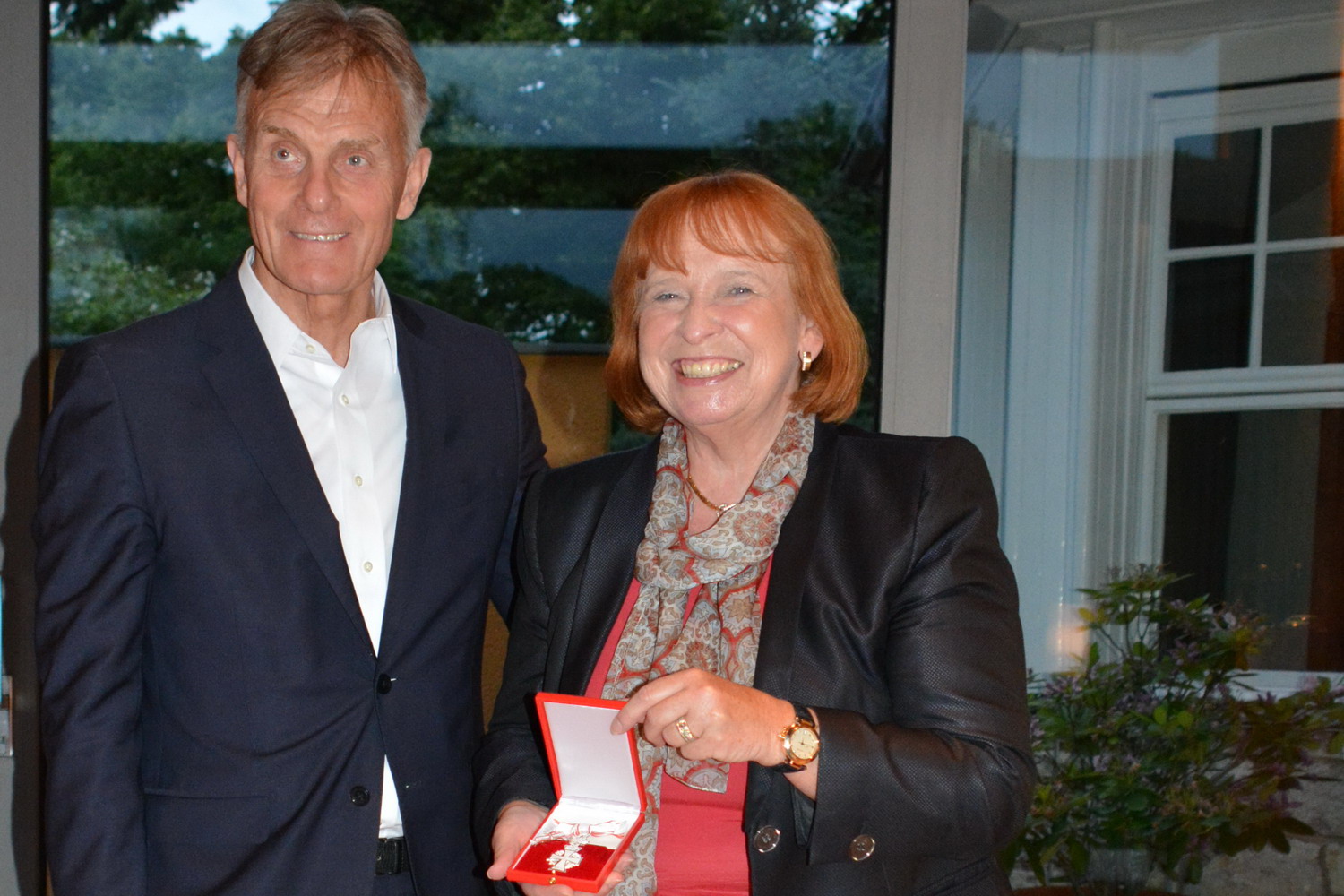Juni 17 – Vor neun Jahren im Juni 2008 hat Ingrid Hofmann offiziell das Amt der dänischen Honorarkonsulin übernommen und ist seitdem für die in Franken lebenden Dänen - nicht nur bei Problemen - gerne erster Ansprechpartner. Für ihr kontinuierliches Engagement wurde sie nun mit dem Ritterkreuz des Dannebrogordens geehrt, das ihr Botschafter Friis Arne Petersen in Berlin übergab. „Diese Ehrung war für mich eine große Überraschung und Ehre und ich habe sie mit Freude und Stolz entgegengenommen. Es ist ja nicht selbstverständlich, dass man für ein Ehrenamt so eine besondere Wertschätzung erfährt“, sagt Ingrid Hofmann