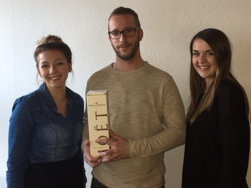 Als Dankeschön für die tolle zweijährige Zusammenarbeit überreichte ihm das Auricher Team zum Abschied eine Flasche Champagner. „Wir verlieren einen sehr sympathischen, geradlinigen und zuverlässigen Mitarbeiter. Das ist bitter! Gleichzeitig freuen wir uns natürlich für ihn und wünschen alles, alles Gute für die Zukunft“, sagt Büroverantwortliche Olga Dassel.