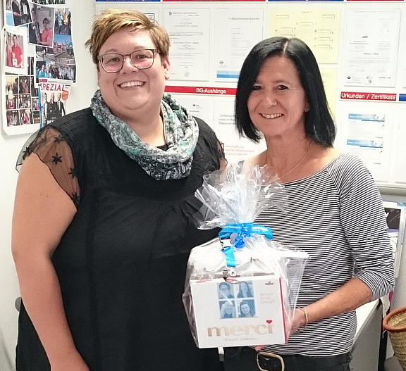 Oktober 2016 - „Nachdem ich die verschiedensten Tätigkeiten in den letzten Jahren ausprobiert hatte, unter anderem im Verkauf, dem Produktions- und dem Montagebereich suchte ich damals etwas Neues“, berichtet Silvia Thoma-Back. Steffi Wagner ergänzt: „Nach dem Vorstellungstermin in der Niederlassung und einem Kennenlernen beim Kunden konnte Frau Thoma-Back direkt durchstarten. Sie überzeugte durch gute Arbeitsleistung, Zuverlässigkeit und Ausdauer. Bei Auftragsspitzen wurde sie an verschiedenen Arbeitsplätzen beim Kunden eingesetzt und konnte somit ihre Flexibilität unter Beweis stellen. Dass der Kunde irgendwann eine Übernahme in Betracht ziehen würde, haben wir schon erwartet. Daher kam diese Option nicht überraschend. Dennoch fällt es uns schwer, nach dieser netten Zusammenarbeit „Auf Wiedersehen“ zu sagen!“