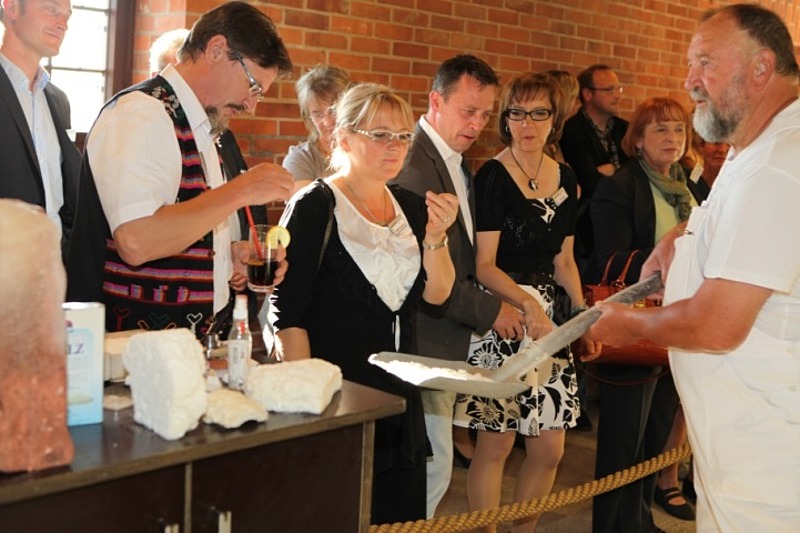 Juni 2014 – Die Stadt Halle ist eng verbunden mit der Geschichte des Salzes. Da liegt es nahe, die Gäste ins Hallore- und Siedemuseum einzuladen, um dort hautnah die Salzgewinnung zu erleben und gleichzeitig ein wenig zu feiern. Während ein Hallore Geschichten rund um das „weiße Gold“ zum Besten gab, konnten die Besucher beobachten, wie es gewonnen und verarbeitet wird. Natürlich durfte auch jeder probieren – garantiert ohne Zusatzstoffe!