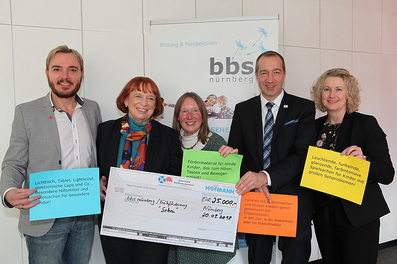 März 18 - „Das ist wirklich überwältigend“ freut sich Gabriele Feigl, Leiterin der Frühförderung SEHEN des Bildungszentrums für Blinde und Sehbehinderte (bbs) in Nürnberg Langwasser. „Mit der Spende über 25.000 Euro können wir das Fördermaterial anschaffen, das wir so dringend brauchen, darunter Lichttische, elektronische Lupen oder Spielmaterial, das zum Hören, Tasten und Bewegen anregt.