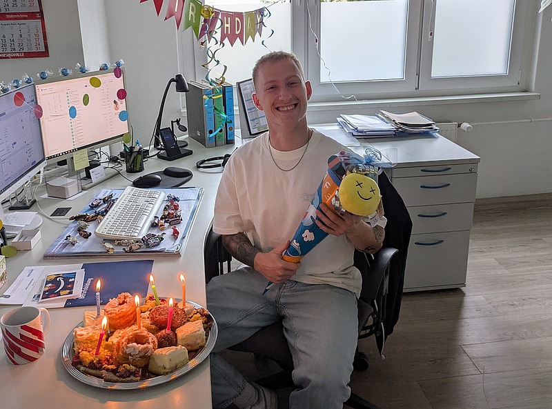 Ihr Azubi Jonas Raap hatte seine Prüfung zum Personaldienstleistungskaufmann erfolgreich bestanden, seinen Übernahmevertrag bei Hofmann Personal unterschrieben – und obendrein auch noch Geburtstag gefeiert. Und das alles an einem Tag!