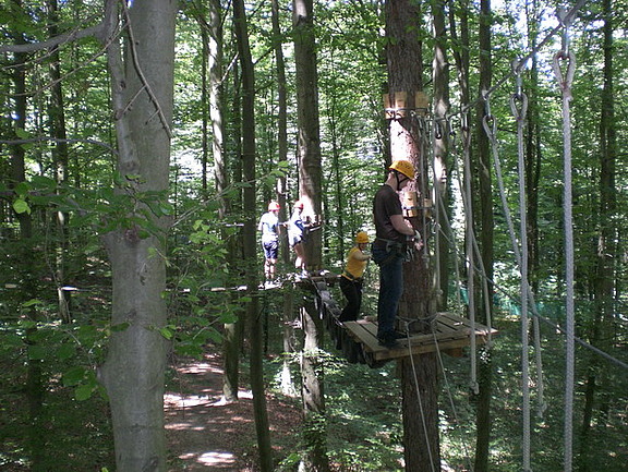 Nach einer umfassenden Sicherheitsunterweisung vom Guide und dem Anbringen des Klettergurts ging der Spaß schon los: Wie Tarzan schwenkte man sich von einem Hindernis zum anderen, wobei es galt, die eigenen Grenzen zu überwinden.