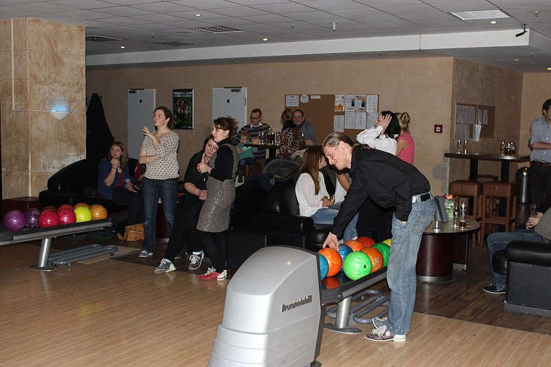 November 2014 - Mit 20 Mitarbeitern startete die Fürther Niederlassung in einen lebhaften Bowling-Abend, eingeläutet mit einem netten Sektempfang. Anschließend rüsteten sich die Bowling-Teams mit entsprechenden Schuhen aus und machten sich an die drei Bahnen, die eigens für diesen Event gebucht waren.