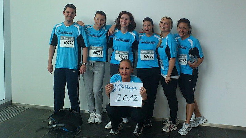 Juni 12 - 68.586 Läuferinnen und Läufer waren dieses Jahr beim J. P. Morgan Lauf in Frankfurt am Start. Und sieben davon waren sportliche Hofmann Mitarbeiter. „Der Schnellste - ein Polizist aus Würzburg - schaffte die 5,6 km lange Strecke in 16:31 Minuten. Da können wir „Schreibtischtäter“ denn doch nicht mithalten“, scherzte Disponentin Narmina Javadova. „Aber wir haben alle das Ziel erreicht und unterstützen mit unserer Teilnahme ja eigentlich in zweifacher Weise soziale Einrichtungen. Zum einen nutzt J.P. Morgan unsere gezahlten Startgelder, um sie als Spende an die Stiftung Deutsche Sporthilfe zu geben und zum anderen haben wir im Rahmen unseres Hofmann-Spendenmarathons 350 Euro „ersportelt“, die wir ebenfalls als Spende in der Region verwenden können.“