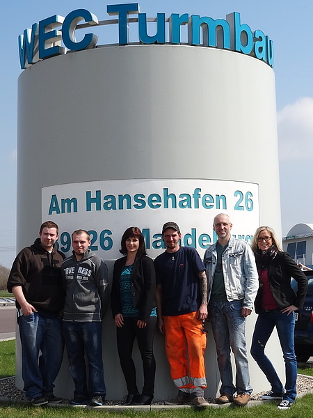 April 2013 – Patrick Gramatte, Sebastian Sommer, Sebastian Adam und Jens Kauschka: Vier Mitarbeiter, die in das Unternehmen WEC Turmbau Magdeburg GmbH wechselten.