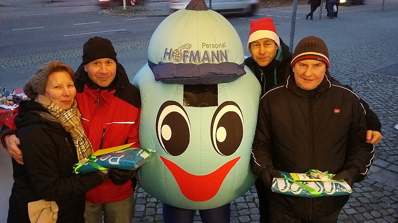 Dezember 2016 – „Wir wollten zu Weihnachten etwas Besonderes machen und hatten das Jobmobil beim Cottbuser Weihnachtsmarkt stehen. Glühwein und Punsch warteten auf unsere Mitarbeiter, und natürlich Essensgutscheine. Als ganz besonderen Service konnte sich jeder seine gerade gekauften Weihnachtsgeschenke von uns schön verpacken lassen“, erzählt Ilka Grafe.