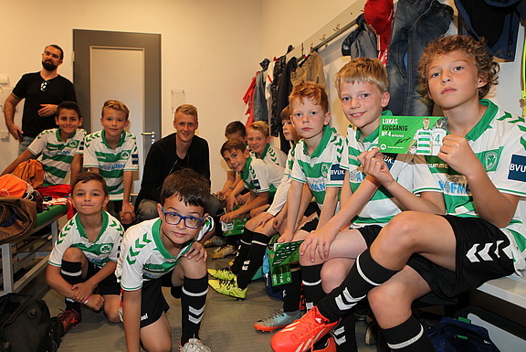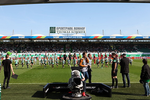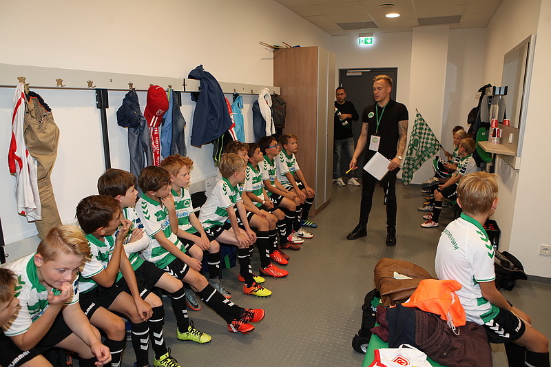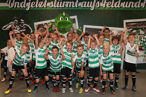 Oktober 18 - 26 Kinder zwischen sechs und zehn Jahren erlebten einen aufregenden Nachmittag bei der Spielvereinigung Greuther Fürth. Sie durften mit den Fußballprofis beider Mannschaften ins Stadion einlaufen und anschließend auf der Tribüne das Spiel verfolgen.
