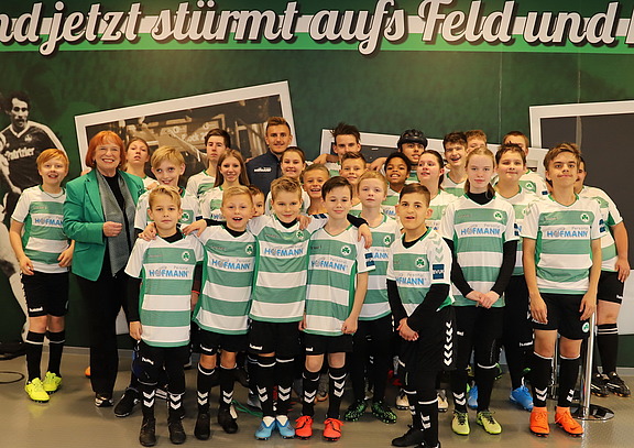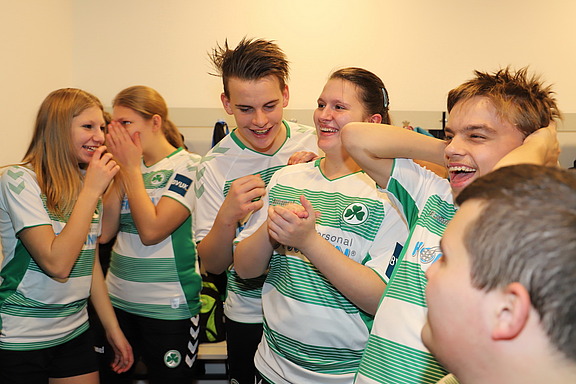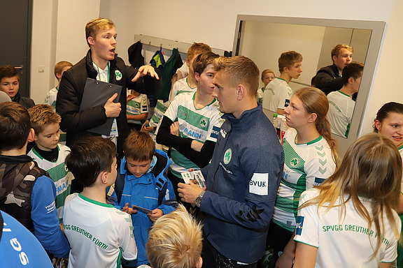 „Ich habe mich gerne anstecken lassen von der Begeisterung, der fröhlichen Erwartung und großer Aufgeregtheit“, freut sich Ingrid Hofmann, nachdem sie die Jungs und Mädels in der Umkleidekabine besucht hatte. Bälle, signiert von den Spielern, gab es von uns als Geschenk noch dazu. Und natürlich Erinnerungsfotos…