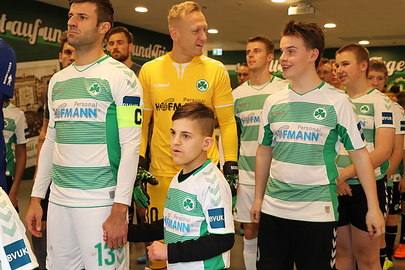 November 19 – Die Aufregung in der Umkleidekabine des Kleeblatts war groß. Am Tag des Frankenderbys liefen die Kinder der Fußballmannschaft FC FED Olé und des TSG Niederfüllbach mit den Profifußballern des Nürnberger Fußballclubs (FCN) und der Spielvereinigung Greuther Fürth gemeinsam auf den Platz. Möglich gemacht durch uns als Hauptsponsor.