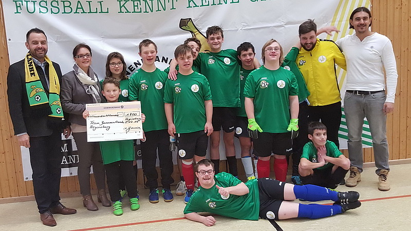 Und da die Regensburger Hofmänner 2016 sehr sportlich waren, konnten sie nun 1800 Euro an das Fußballprojekt „Team Bananenflanke Regensburg“ übergeben, das speziell geistig behinderte und sozial benachteiligte Kinder und Jugendliche fördert.