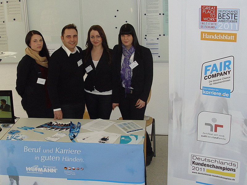 Um interessierte Schüler umfassend über die Ausbildungsmöglichkeiten zu informieren, lud die Louis-Leitz-Berufsschule im Rahmen eines Schülerprojekts verschiedene Firmen dazu ein, einen Informationstag für Interessierte mitzugestalten – darunter auch Hofmann Personal. Die Messe begann mit der Begrüßung des Schulleiters und des Messeteams in der Schul-Aula. Danach konnten sich Interessierte im regen Austausch an diversen Ständen der Aussteller über Ausbildungs- und Studienmöglichkeiten informieren.