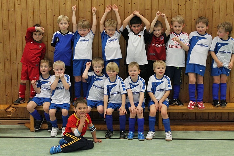 Diese jungen Talente im Alter von 5-6 Jahren spielen zweimal in der Woche und werden ehrenamtlich von Olaf Glückstadt betreut. Damit sich die Kleinen auch wie die Großen fühlen können hat Hofmann Personal nicht lange gezögert und einen Satz bunter Trikots an die Jungmannschaft spendiert.