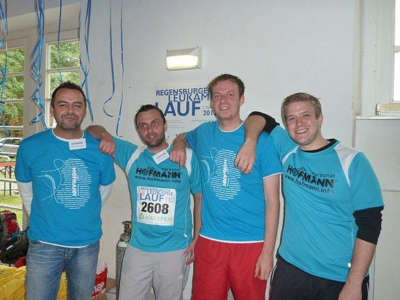 Oktober 2012 – Der Start war nicht einfach, denn bis in die Mittagsstunden goss es wie aus Kübeln, was den Helfern die Vorbereitung sichtlich erschwerte. Das tat der guten Stimmung jedoch keinen Abbruch: über 3.200 Läufer und Walker trotzten dem schlechten Wetter, um sich für die „gute Sache“ ins Zeug zu legen. Darunter 55 sportliche Läufer, die für Hofmann liefen. Dabei spielten weder Rekorde, noch Bestzeiten eine Rolle; vielmehr standen der Solidaritätsgedanke und die Hilfe für kranke Mitmenschen im Vordergrund: Über 120 neue Stammzellenspender konnten bei der Aktion Knochenmarkspende gewonnen werden. Organisator Dr. Michael Rechenmacher bedankte sich bei den Mitarbeitern der Firma Hofmann sowohl für die Spende als auch für das große Engagement.