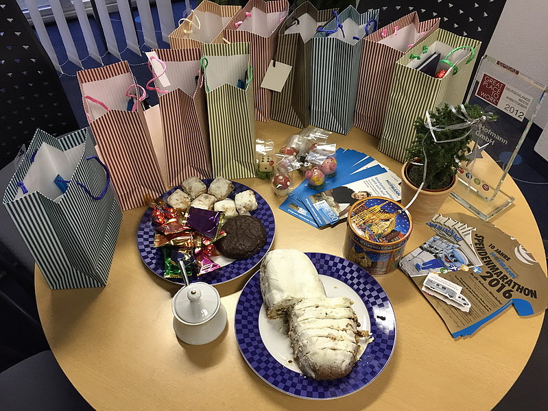 Dezember 2016 – „Die Weihnachtszeit zum Abschluss des Jahres bietet eine wunderbare Gelegenheit, sich bei den Mitarbeitern zu bedanken. Darum haben wir zu einer gemütlichen Weihnachtsrunde eingeladen. Die Geschenktütchen waren gepackt, der Kaffee duftete und auch der Stollen wartete darauf, gegessen zu werden“, erzählt Natasha Franklin.