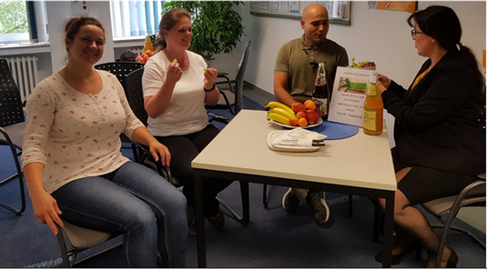 September 18 – „Es ist wichtig über das Thema Gesundheit zu sprechen“ sagt Personaldisponentin Miriam Pulawski. Aus diesem Grund veranstaltete die Niederlassung Hannover einen Gesundheitstag für Ihre Mitarbeiter. Eingeladen war Betriebsärztin Dr. Tanja Vogelsang, die kompetent die Fragen der Anwesenden beantwortete. Zusätzlich informierte sie, wie eine ausgewogene Ernährung aussieht, was Bewegung für den menschlichen Körper bedeutet und dass es sich auszahlt, ausreichend Wasser zu trinken und Süßigkeiten besser wegzulassen.