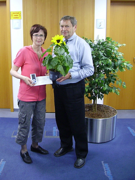 Juni 10 – Gewinnspiele sind ihre Leidenschaft.Und es lohnt sich, wie man sieht. Bei unserer Jubiläumsverlosung ist Brigitte Seyrich unsere erste Gewinnerin. Der Preis: ein Apple Ipod nano, also ein tragbarer MP3 Player mit Videokamera. „Ich muss erst einmal genau schauen, wie der eigentlich funktioniert“, meinte sie schmunzelnd, als unser Disponent Horst Mehner ihr den Gewinn übergab. „Meine Kinder werden mir schon helfen. Es ist ein toller Gewinn. Ich freue mich sehr und sage Danke schön!“ Das Hofmann-Team gratuliert ganz herzlich.