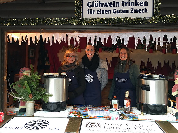 Dezember 2015 - Unter dem Motto „Glühwein trinken für einen guten Zweck“ war auch das Banking Team der Niederlassung auf dem Weihnachtsmarkt vertreten. Regionalgebietsleiter Marcus Gasch berichtet: „Wie in jedem Jahr gab es einige Organisationen aus Leipzig, die sich auf dem Weihnachtsmarkt für die Förderung sozialer Projekte stark machen. Daher war für uns klar, wir wollen auch helfen! Caroline Eckert und Nicole Backhaus haben die Wirtschaftsjunioren Leipzig, die gemeinsam mit Round Table e.V., KIWANIS e.V. und ZONTA e.V. einen sehr urigen Verkaufsstand errichtet hatten, tatkräftig beim Verkauf unterstützt!“