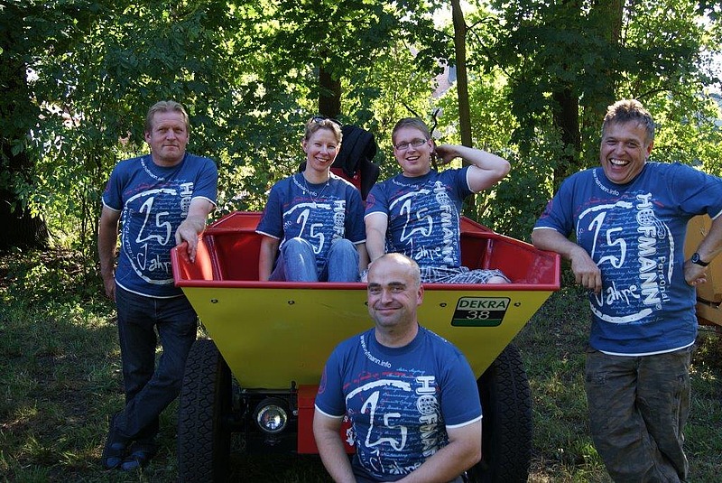 September 2013 - Nichts für verwöhnte Nasen: Aufwirbelnder Staub und schwarze Rauchfahnen aus dem Auspuff sorgen beim Dumperrennen zunächst für dicke Luft. Zimperlich darf man nicht sein, wenn man sich mit den sechseinhalb PS-starken Baufahrzeugen dem turbulenten Rennen stellt. Unsere Kollegen und Kunden wollten es wissen und unterzogen sich dem Härtetest. So gingen im Rahmen der Deutschen Dumper Meisterschaft in Drebkau (Brandenburg) Daniel Hoffmann, Andreas Kircher und Filipp Krahl an den Start. Personaldisponentin Ilka Grafe, die gemeinsam mit Christian Krahl die Zeit gemessen hat, schwärmt: „Da haben unsere Jungs ganz schön abgeräumt.“