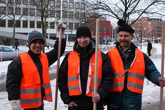 Reza Riyahi, Manfred Pohl und Juri Naifert unterstützten die Stadtreinigung beim Kampf gegen Schnee und Eis