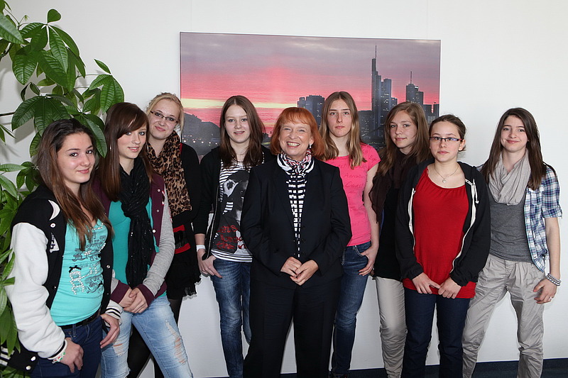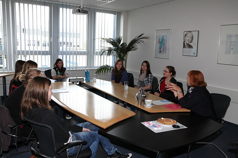 Ingrid Hofmann nahm sich Zeit für die Mädchen, beantwortete Fragen und stellte selbst welche: zum Beispiel ob sie schon einen Berufswunsch haben und bat die girls, sich bei ihrer Berufswahl umfangreich zu informieren. Aus Gesprächen mit Kundenunternehmen weiß sie, wie gerne diese auch Mädchen in technischen Berufen ausbilden würden. „Noch nie waren die Chancen für junge Mädchen so gut, Berufe zu erlernen, die ihnen ordentliche Einkommen und Entwicklungsmöglichkeiten bieten. Ich würde mir sehr wünschen, dass sie es nutzen“, sagt Ingrid Hofmann.