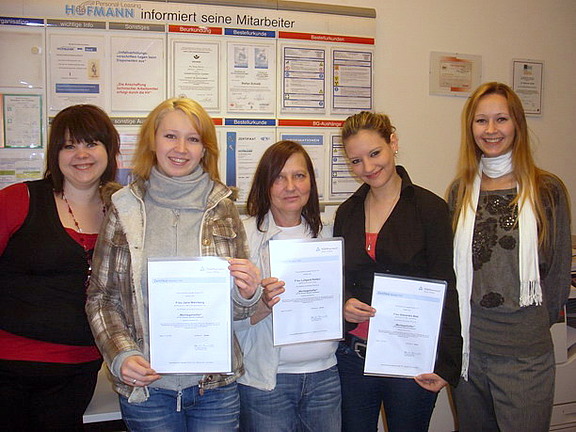 Mit Schulungen und einer Prüfung durch den TÜV Rheinland bietet Hofmann Personal seinen Zeitarbeitsmitarbeitern die Möglichkeit, ihre während der Arbeitseinsätze erworbenen Kenntnisse nachzuweisen und durch ein unabhängiges Institut zertifizieren zu lassen.