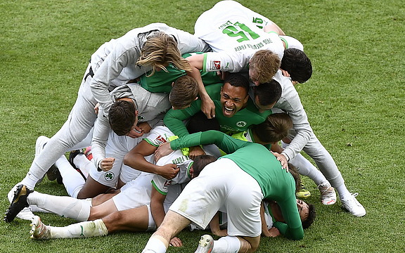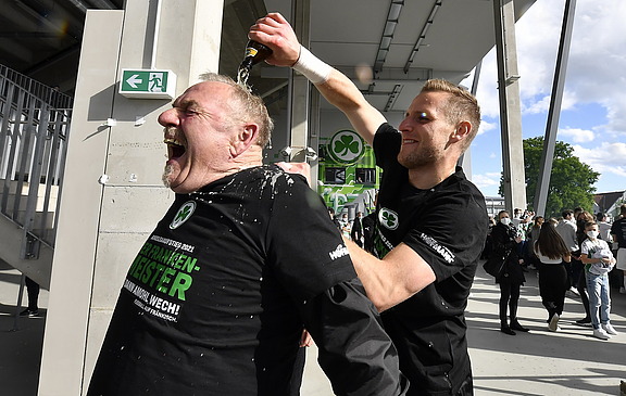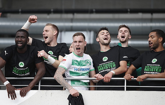 Die Anspannung war ja immer noch da, denn Kiel konnte ja noch aufholen! Hat es aber nicht. Dann der erlösende Schlusspfiff. Ich glaube wir haben irgendwie alle vor Freude und Erleichterung ein paar Tränen vergossen. Und natürlich werde ich mein Versprechen halten: Unter allen Mitarbeitern werde ich mindestens 100 Eintrittskarten zu Erstliga-Spielen mit Beteiligung der SpVgg Greuther Fürth verlosen.“