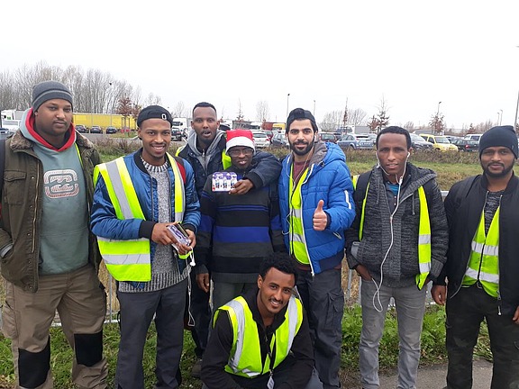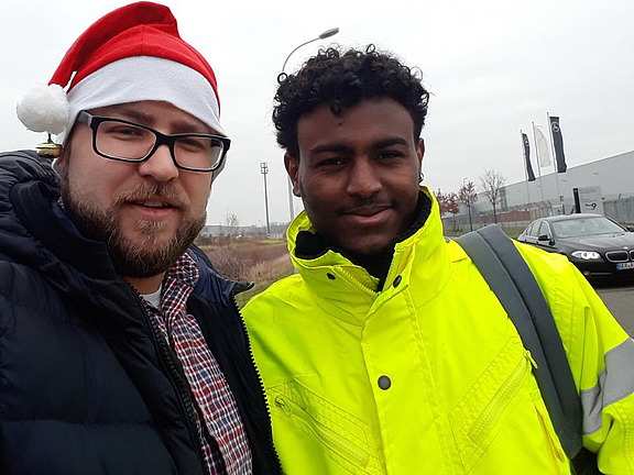 Dezember 17 - „Unsere Mitarbeiter hatten auch ganz artig ihre Sicherheitsschuhe vor die Türe des Kundenunternehmens gestellt und unser eigens für diesen Zweck engagierter Nikolaus "Manuel" hat diese zur Freude aller mit kleinen Nikoläuschen befüllt“, lacht Regionalleiterin Kathrin Winter. Für einige der geflüchteten Mitarbeiter war es das erste kleine Fest, das sie hier erleben durften - in einem friedlichen Land.