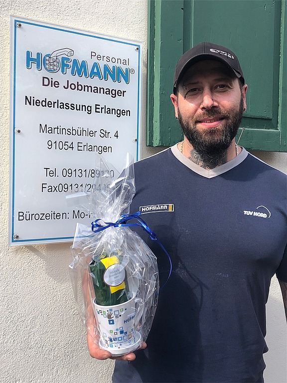 Ein Freund, der über die Niederlassung Erlangen 1 bei Siemens arbeitet, empfahl Gianfranco Hofmann Personal. Der Bewerbungsprozess verlief schnell und unkompliziert. Er ging von Anfang an offen und ehrlich mit seiner Vergangenheit um, was sowohl bei Hofmann Personal als auch beim Kunden Anklang fand. "Frau Bergemann ließ sich von meiner Vorgeschichte nicht abschrecken," erzählt Gianfranco. "Das größere Problem war zunächst, dass er keinen Führerschein hatte“, ergänzt Niederlassungsleiterin Angela Keitel. „Nun hilft ihm der Kundenbetrieb dabei, diesen wiederzubekommen."