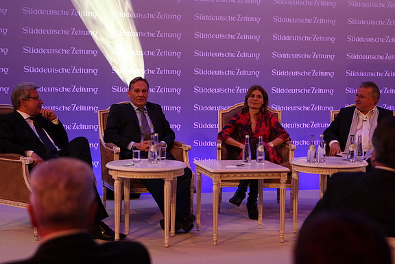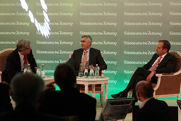 Im sogenannten Kreuzverhör verteidigte Siemens-Chef Peter Löscher zwar die Energiewende der Bundesregierung, kritisierte aber gleichzeitig das Erneuerbare-Energien-Gesetz, das dringend verändert werden müsse. Auch Bundesbankpräsident Jens Weidmann stellte sich dem Kreuzverhör und machte keinen Hehl daraus, dass er das Handeln der Euro-Regierungen und der Zentralbank äußerst kritisch sieht.