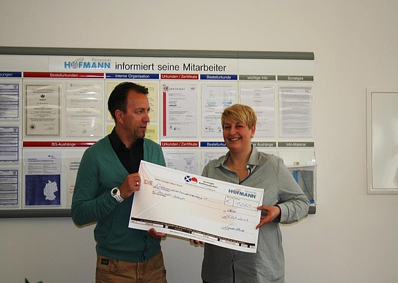 Büroverantwortliche Madlen Heinike freute sich sehr, dass die Gäste so großzügig waren und überreichte Mike Wolf von Sabaki einen Scheck in Höhe von 1.260 € mit dem Versprechen, dass sie sich auch weiterhin für das Projekt engagieren werde.