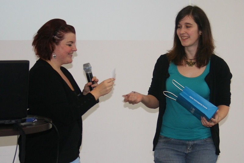 Natürlich gab es auch ein Gewinnspiel, bei dem ein Lösungswort in einem Bilderrätsel erraten werden musste. Alexandra Christel fungierte als „Lottofee“ und durfte drei Gewinner ziehen. Zum Schluss wurden noch drei Kollegen zum Mitarbeiter des Jahres 2013 gekürt und jeder Teilnehmer erhielt ein kleines Hofmann-Präsent überreicht.